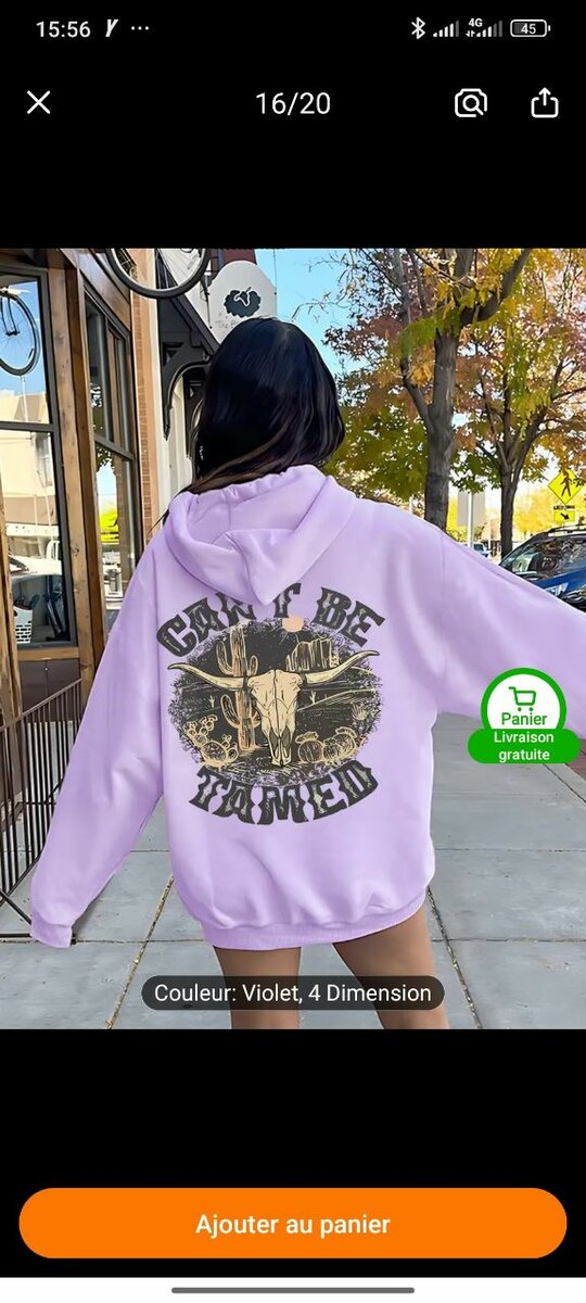 Découvrez ce hoodie violet avec imprimé audacieux, parfait pour un style décontracté et moderne. Conçu en matière douce et confortable, idéal pour les sorties ou les moments de détente. Faites sensation avec ce vêtement unique et attrayant.