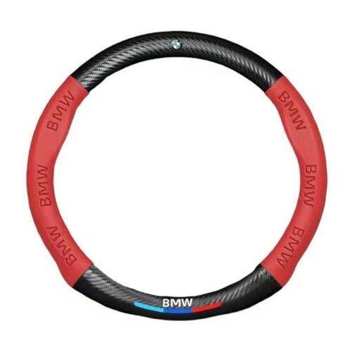 Housse de volant BMW en cuir rouge et fibre de carbone. Conception élégante et confortable pour les propriétaires de BMW. Facile à installer et durable.