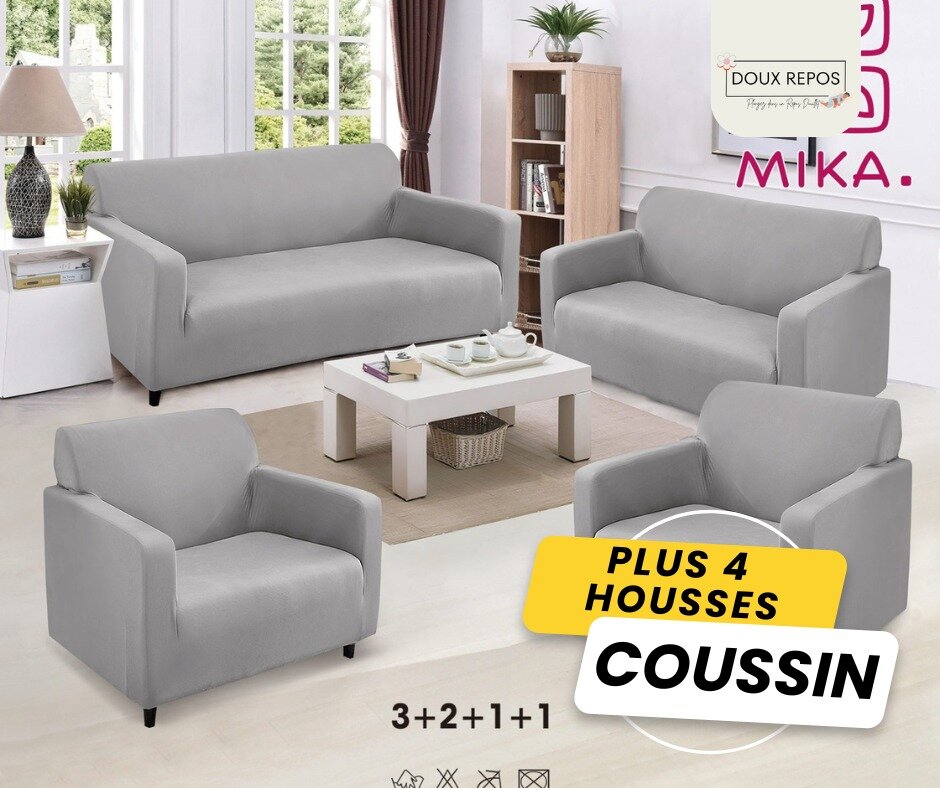 Transformez votre salon avec les housses de canapé MIKA. Offrant un ajustement parfait pour un ensemble 3+2+1+1, elles protègent et modernisent vos meubles. Facile à installer et fabriqué avec des matériaux durables, cet ensemble est livré avec 4 housses de coussin pour compléter le look.