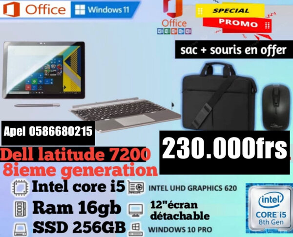 Découvrez le HP ProBook 450 G4 avec processeur Intel Core i5. Équipé de 8 Go de RAM et d'un SSD de 256 Go, cet ordinateur offre une performance exceptionnelle pour vos besoins professionnels et personnels. Comprend un écran de 15 pouces, Windows 10 Pro, et une carte graphique Intel UHD. Offre spéciale avec sac et souris inclus !