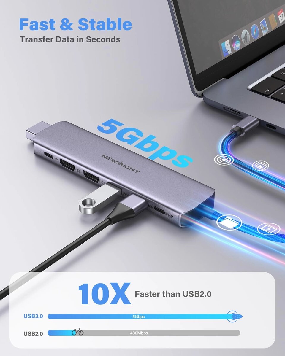 Le hub USB-C multifonction Newnight offre une connectivité rapide jusqu'à 5 Gbps, idéal pour les transferts de données massifs. Compatible Windows, il supporte le mode miroir et les modes étendus pour une flexibilité d'affichage exceptionnelle. Parfait pour les professionnels en déplacement.