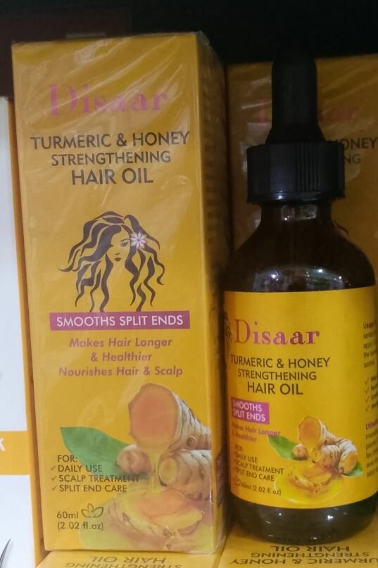 Découvrez l'huile capillaire Disaar au curcuma et miel, idéale pour des cheveux longs et sains. Nourrit le cuir chevelu tout en lissant les pointes fourchues. Parfaite pour un usage quotidien et les soins capillaires spéciaux.
