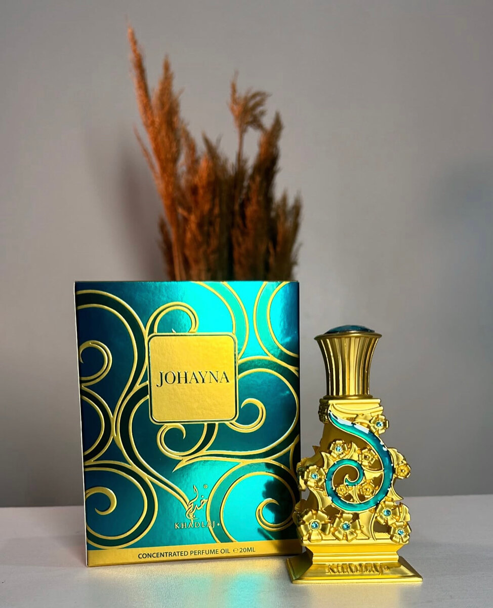 Découvrez Johayna Green, une essence luxueuse de Khadlaj Perfumes. Cette fragrance pour femme révèle des accords sucrés et caramélisés, enrichis de notes de pistache et de chocolat noir. Avec une tenue de 7h et un sillage fort, ce parfum est idéal pour une journée élégante ou une nuit envoûtante. Parfait en toute saison, il vous enveloppe de sophistication.
