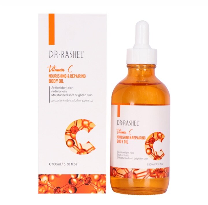 Huile nourrissante enrichie en vitamine C, Dr Rashel. Restaure l'éclat de la peau, hydrate et adoucit. Parfait pour une utilisation quotidienne pour une peau éclatante.