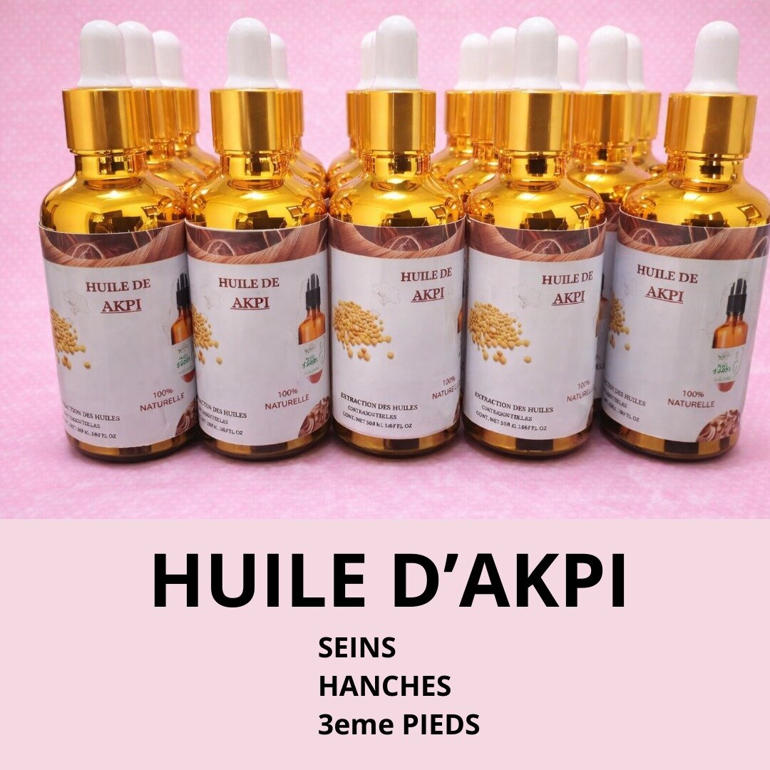 Huile d'Akpi 100% naturelle pour le soin des seins et des hanches. Favorise la fermeté et l'élasticité de la peau. Idéale pour un massage quotidien ciblé. Flacon avec compte-gouttes pour une application précise.