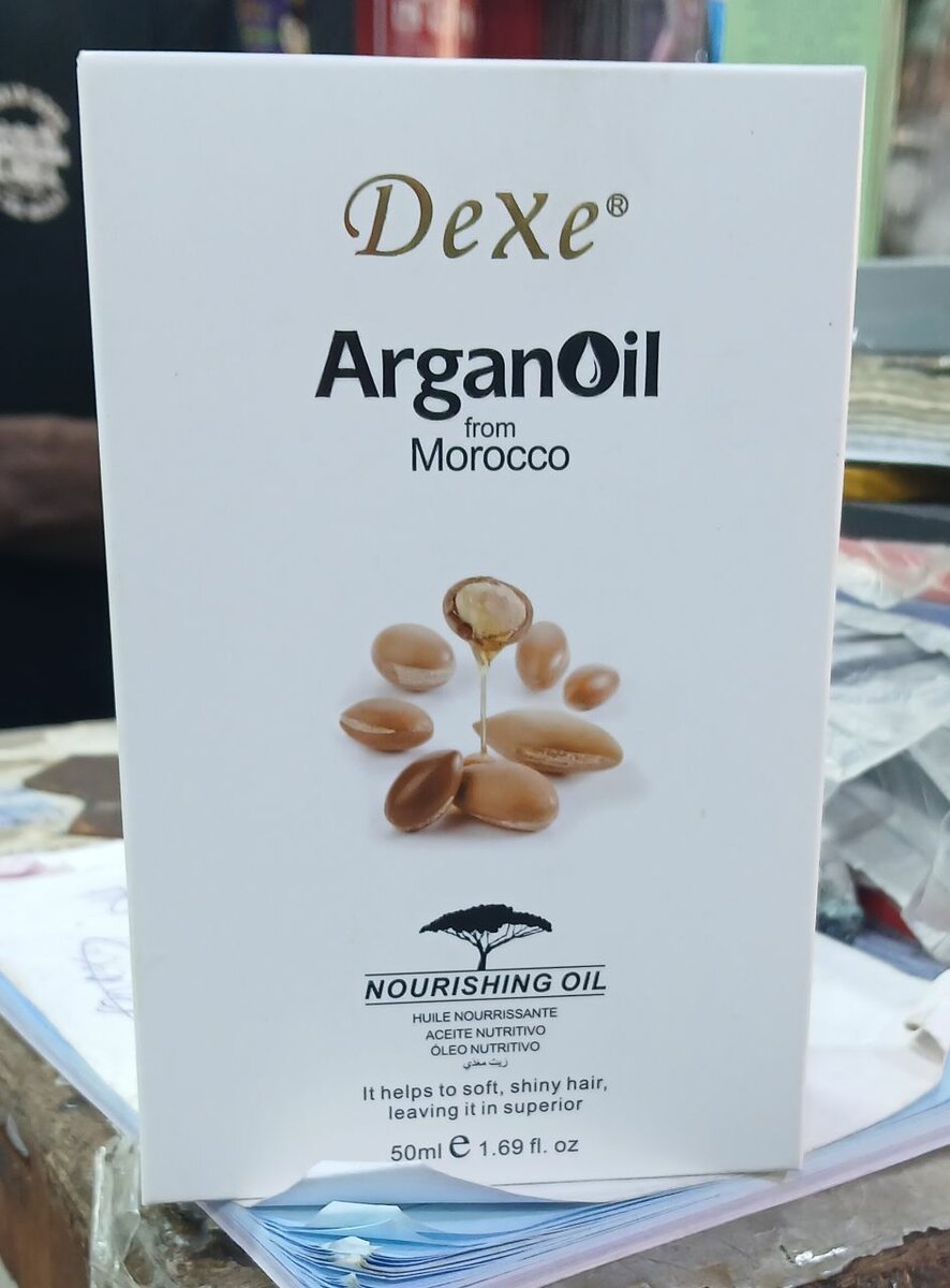 Découvrez l'huile d'argan nourrissante Dexe, enrichie en huile d'argan du Maroc. Idéale pour les cheveux secs et abîmés, elle les rend doux et brillants.