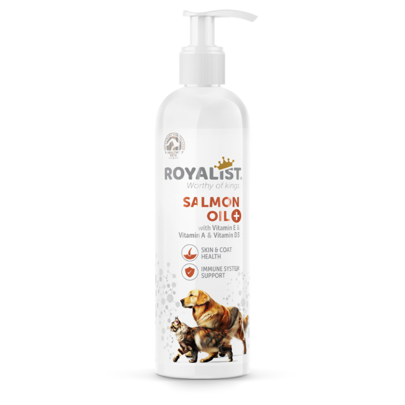 Améliorez la santé de la peau et du pelage de vos animaux avec l'Huile de Saumon Royalist. Enrichie en vitamines E, A et B5, elle booste le système immunitaire de votre chien ou chat. Idéale pour une utilisation quotidienne, elle soutient le bien-être général de votre compagnon.