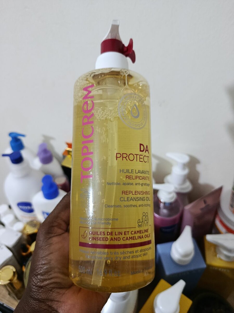 Découvrez l'Huile Lavante Relipidante de Topicrem, enrichie en huiles de lin et cameline. Idéale pour nettoyer, apaiser et protéger la peau.