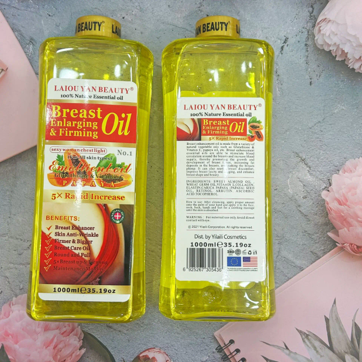 Huile naturelle pour améliorer la fermeté et l'apparence des seins. Composée d'extraits essentiels pour un soin quotidien délicat. Idéale pour les femmes recherchant un raffermissement rapide et efficace. Appliquez quotidiennement pour des résultats optimaux. Format généreux de 1000ml.