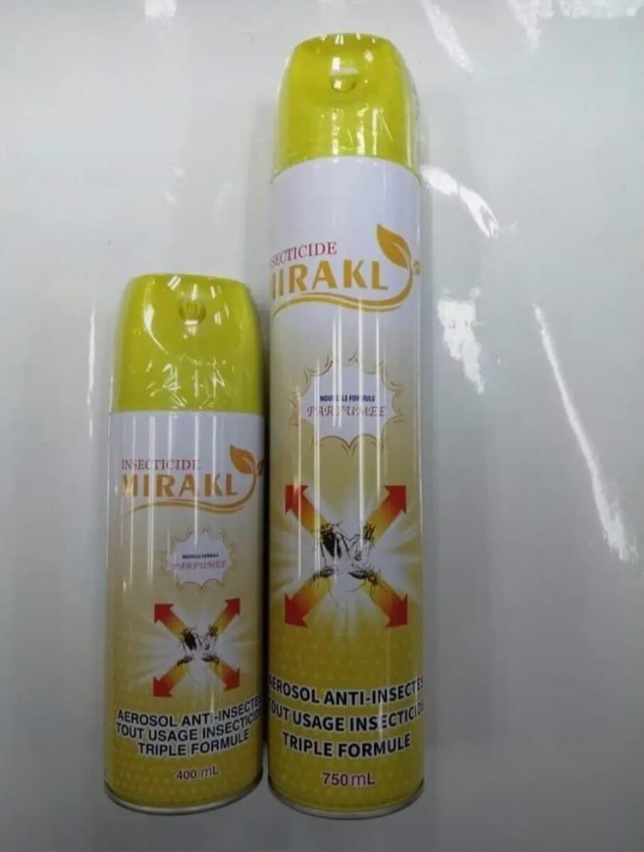 Éliminez les insectes indésirables avec l'insecticide aérosol MIRAKL. Triple formule efficace contre les cafards, moustiques et autres insectes. Utilisation facile et rapide. Idéal pour la maison, les bureaux et les espaces publics.