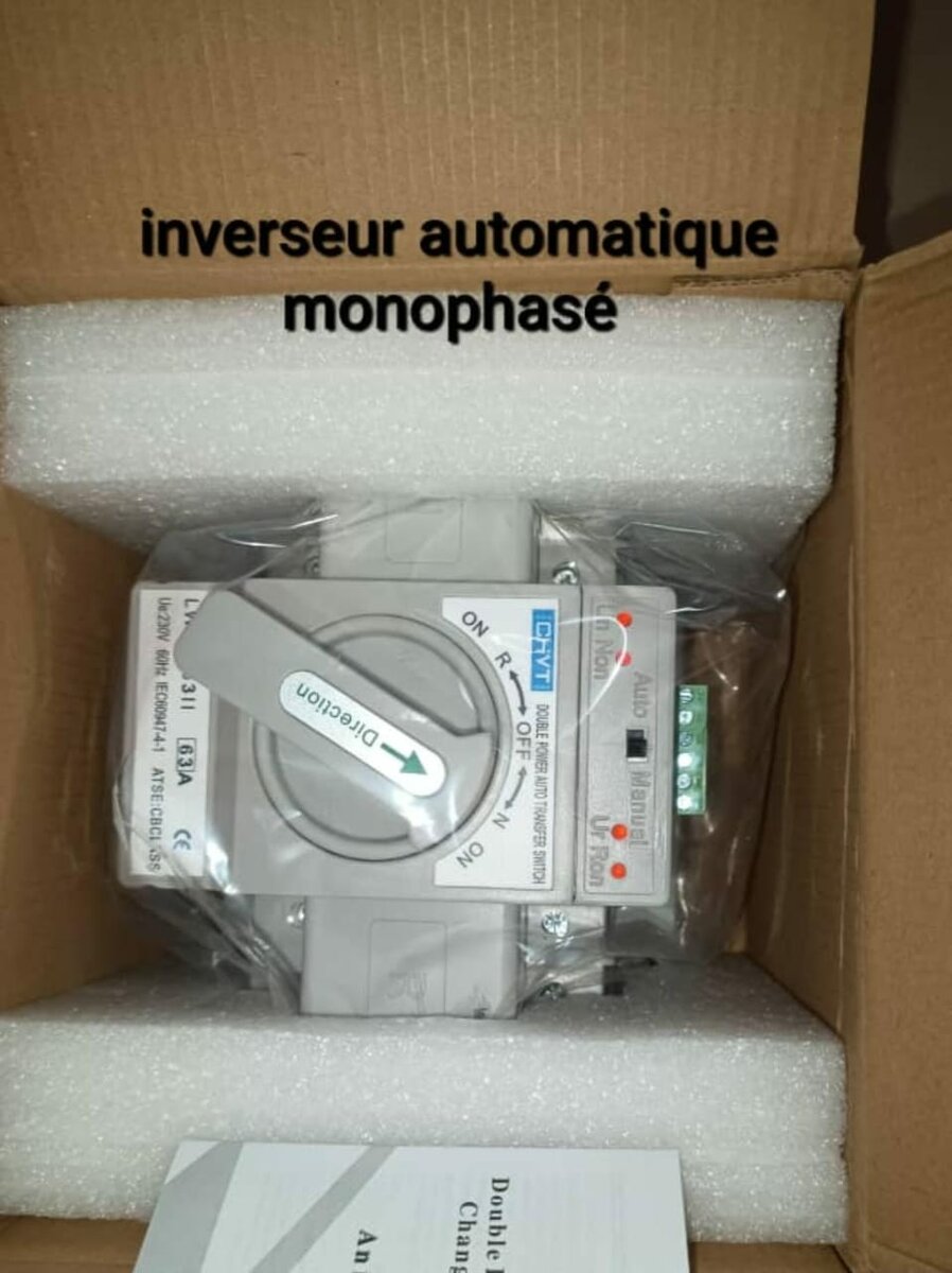 Optimisez la sécurité électrique de votre maison avec cet inverseur automatique monophasé. Idéal pour une transition fluide entre sources d'énergie. Facile à installer et fiable pour une utilisation domestique.