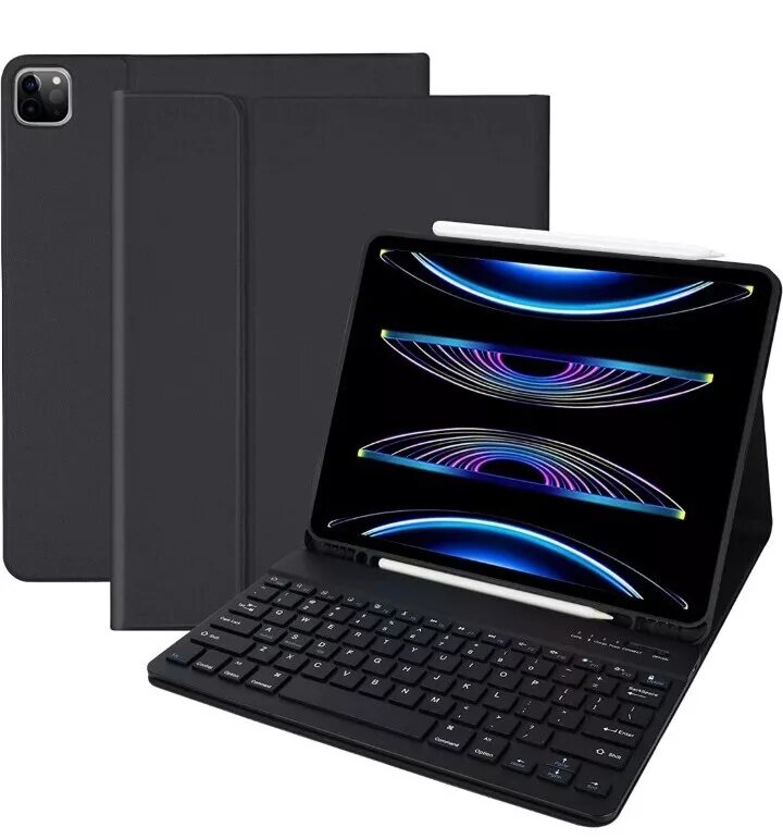 Keyboard Case for iPad Pro 12.9 2022 6th Generation / 2021 5th Gen / 2020 4th Gen / 2018 3rd Gen, 12.9-inch iPad Pro Case with Magnetically Detachable Wireless Keyboard and Pencil Holder, Black