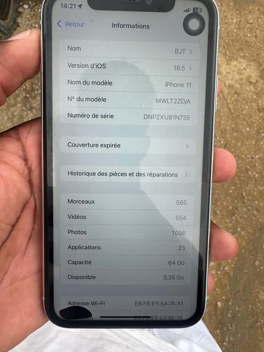 iPhone 11 simple 64gb Tout passe sauf que l arrière est fissuré Il y a aussi une petite tâche au bas de l écran Nb: c est l écran d origine