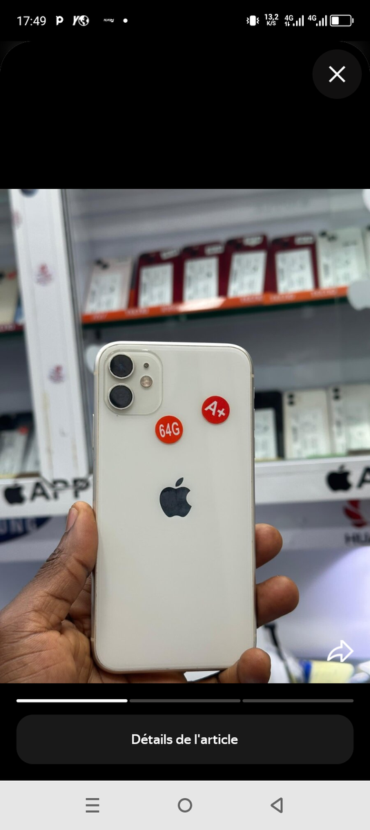 Découvrez le iPhone 11 en blanc avec 64GB de stockage. Parfait pour capturer des moments en 4K et profiter d'une performance fluide. Idéal pour le quotidien et le travail!
