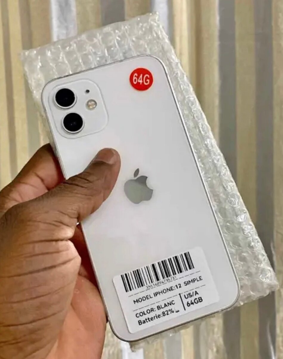 Téléphone Apple iPhone 12 Simple 64GB blanc. État impeccable, batterie 82%. Modèle idéal pour une utilisation quotidienne.