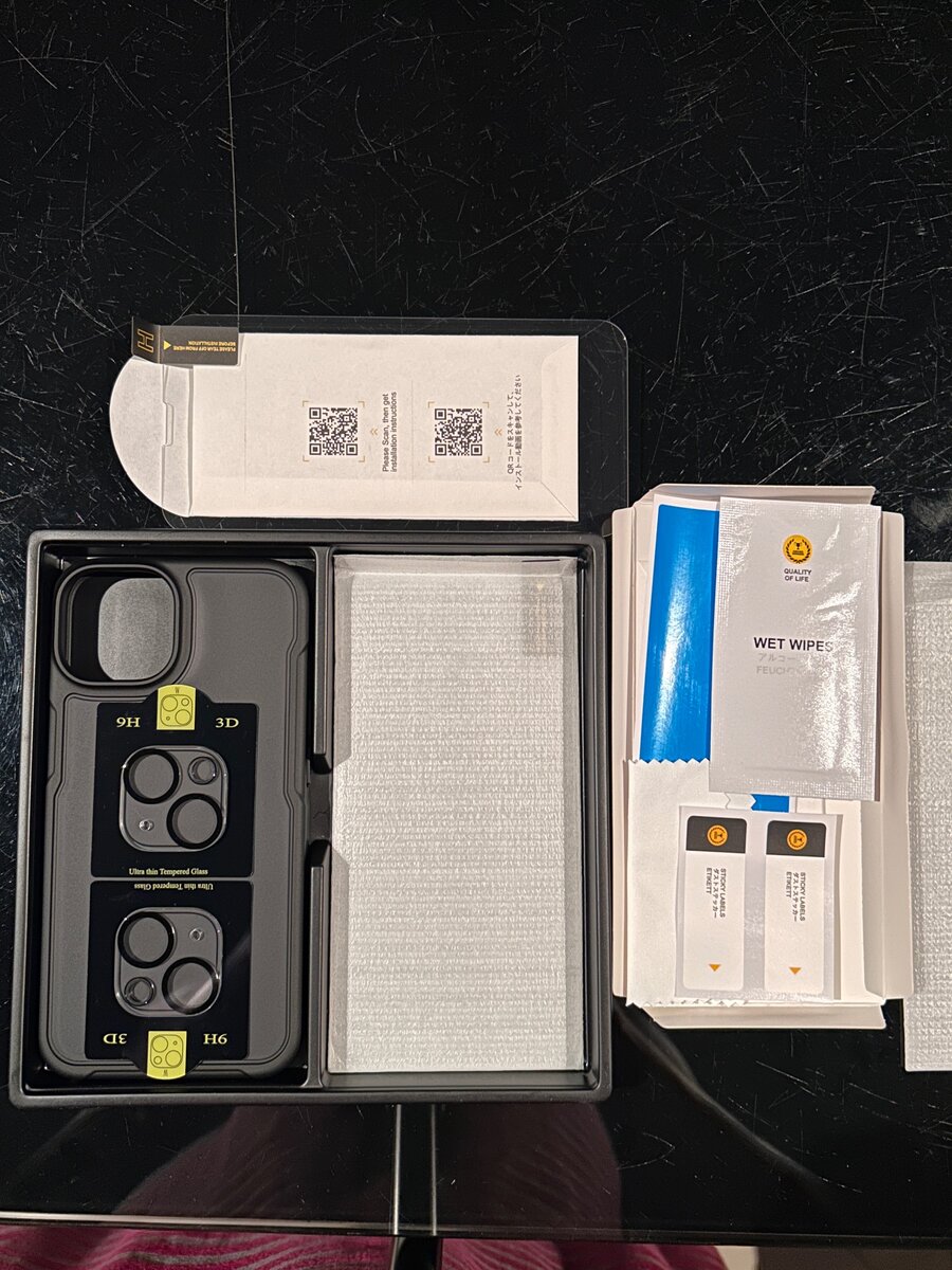 Includes Sleek hard core case Two plain screen protectors Two camera protectors Wipes and sticker guides