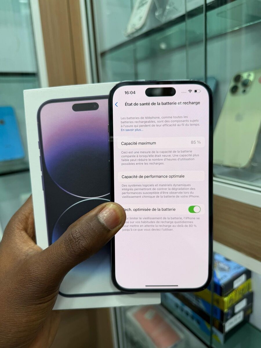 Découvrez l'iPhone 14 Pro violet reconditionné, avec une batterie performante et une caméra de haute qualité. Un choix idéal pour ceux qui recherchent un smartphone fiable et élégant.