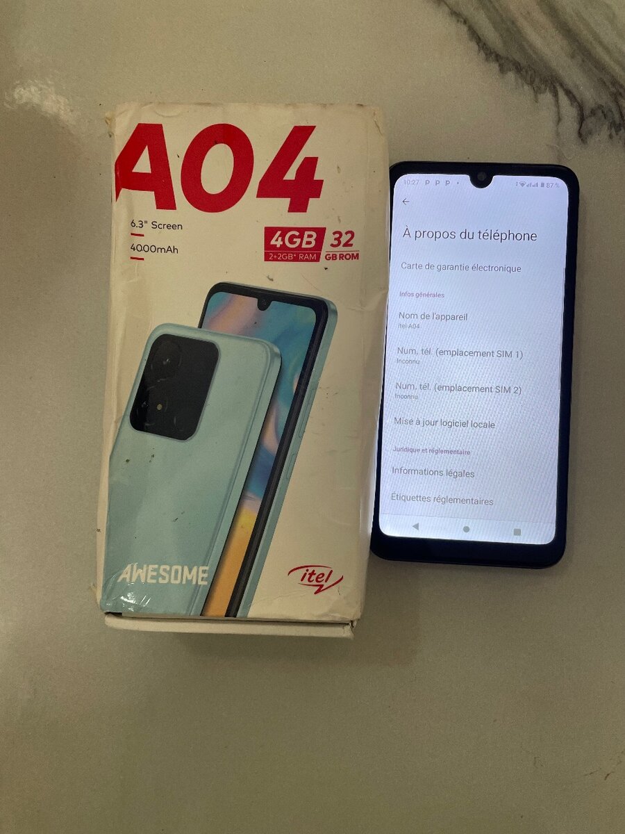 Itel a04 disponible à 30.000 avec le carton et tous les accessoires
