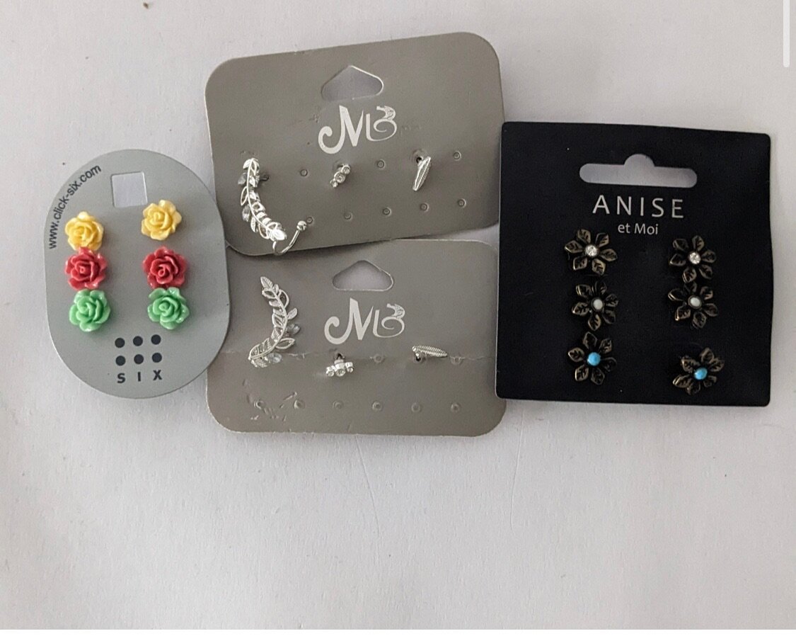 12 Pairs/Set Exquisite Gril Earrings Heart-Shape Diamond Pea