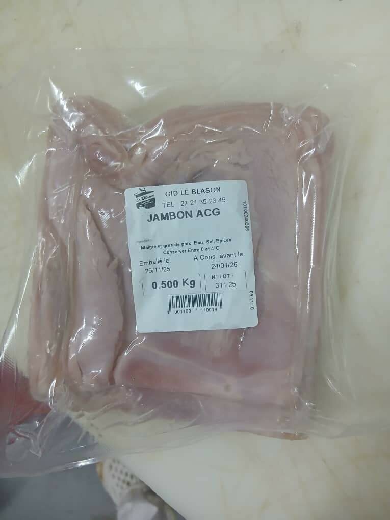 Délicieux jambon ACG de 500g. Parfait pour sandwiches, quiches ou salades. Saveur authentique, prêt à l'emploi, se conserve longtemps. Idéal pour repas rapides et gourmands.