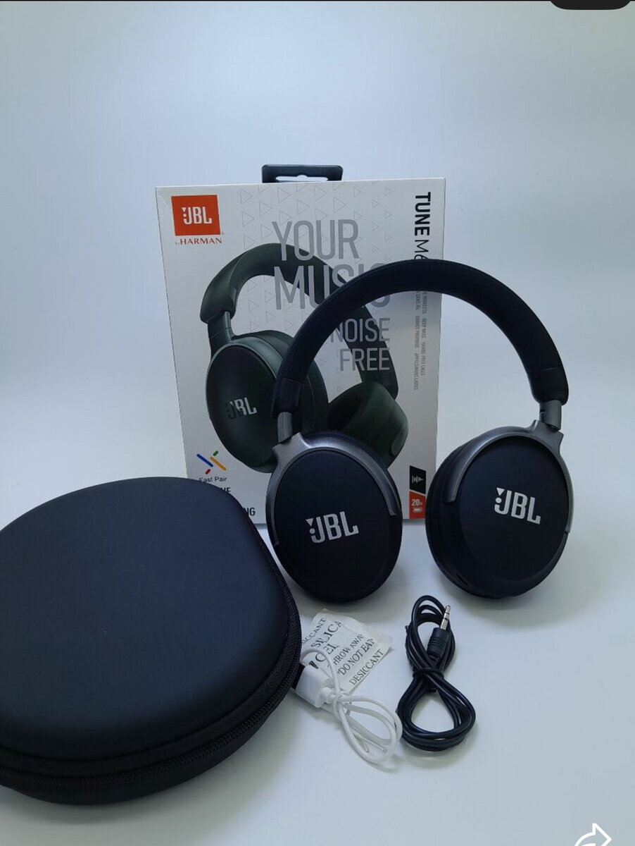 Experience immersive sound with JBL Noise-Canceling Headphones. These over-ear headphones offer exceptional noise isolation, perfect for music lovers and travelers. Includes a carry case and charging cable for convenience on the go.