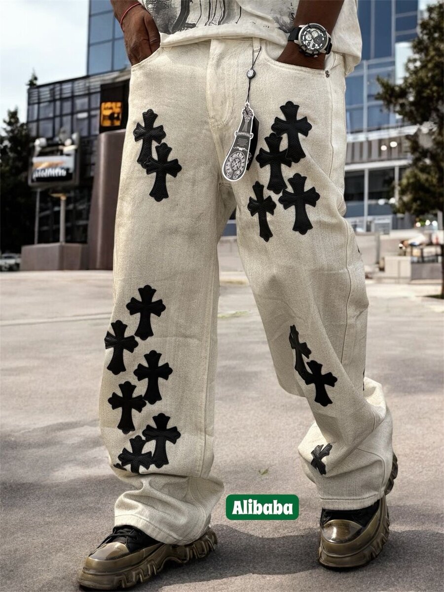 Optez pour un style audacieux avec ce jean baggy orné de croix noires. Conçu pour ceux qui aiment s'exprimer à travers leur tenue, ce pantalon combine confort et originalité. Idéal pour un look décontracté et tendance. Parfait pour sorties urbaines et événements décontractés.