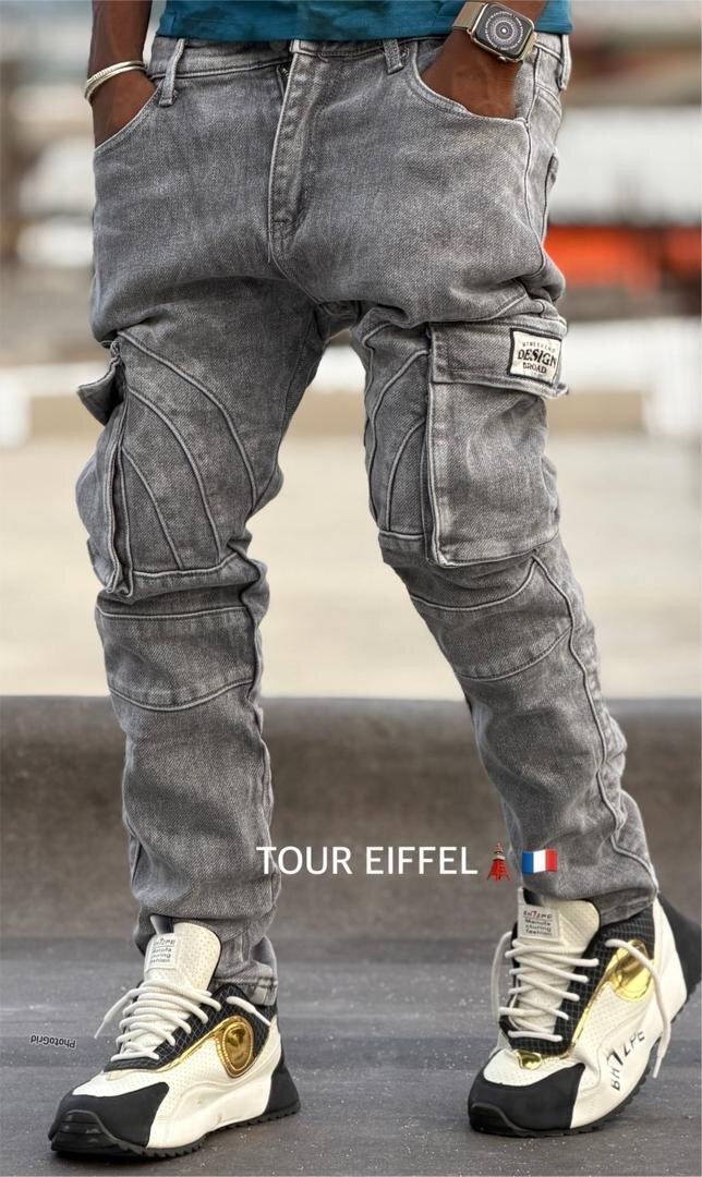 Optez pour ce jean cargo gris pour un style urbain et décontracté. Fabriqué avec des matériaux durables, il offre confort et praticité grâce à ses multiples poches. Idéal pour les sorties en ville ou les occasions décontractées, ce pantalon s'accorde facilement avec tout type de chaussures.