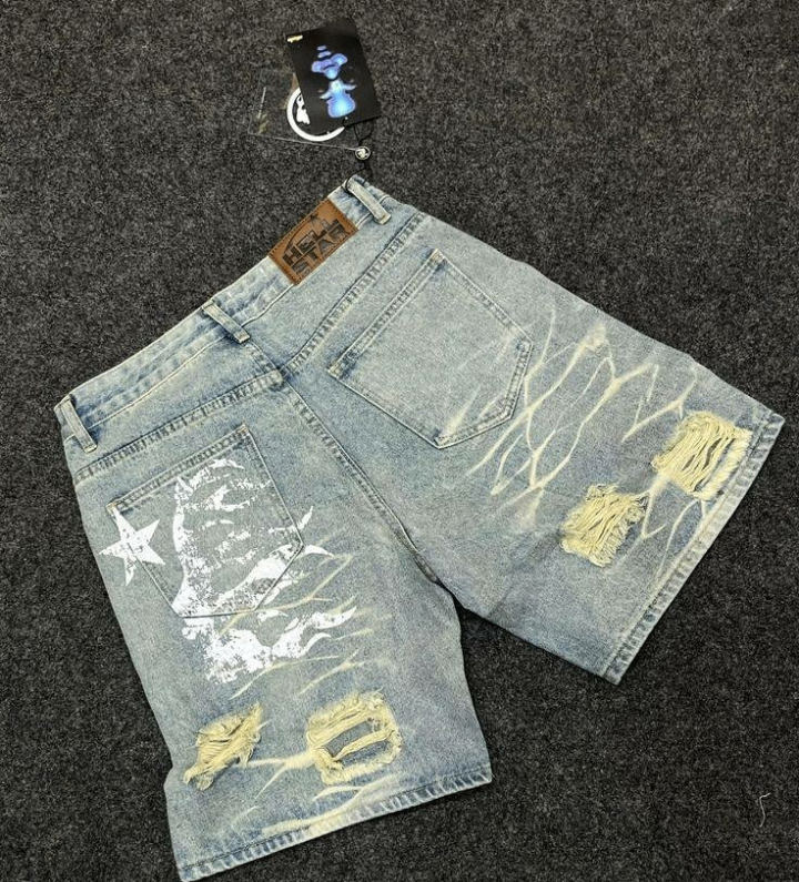 Shorts en jean à motifs