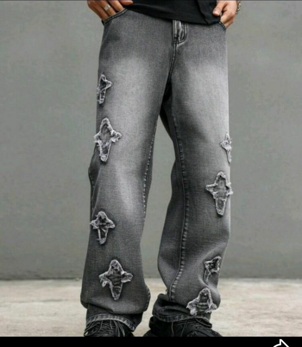 Découvrez ce jean gris décontracté avec motifs originaux. Idéal pour un look tendance et confortable. Parfait pour un style urbain et moderne.
