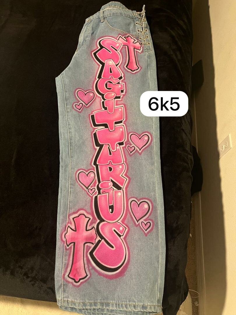 Jean décontracté avec design astrologique Sagittaire. Parfait pour les amateurs de mode urbane et de zodiaque. Confort et style garantis.