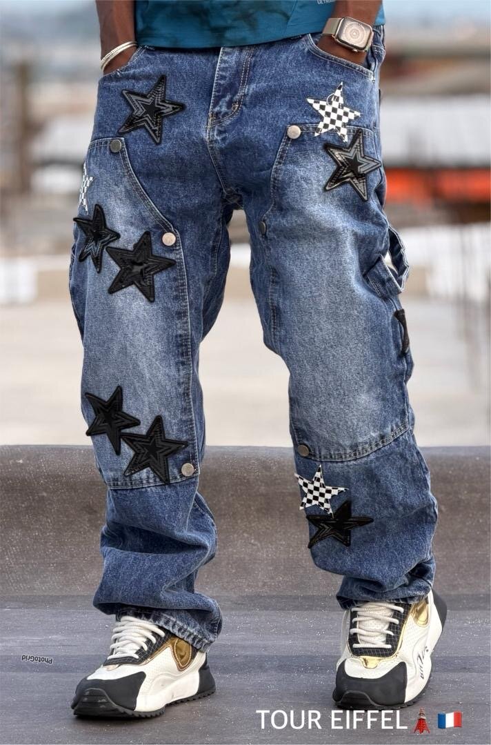Adoptez un style unique avec ce jean décontracté orné d'étoiles. Conçu pour le confort et l'originalité, il est parfait pour une touche audacieuse à votre tenue quotidienne. Idéal pour les sorties urbaines ou un look casual stylé. Exprimez votre personnalité avec style et confort.