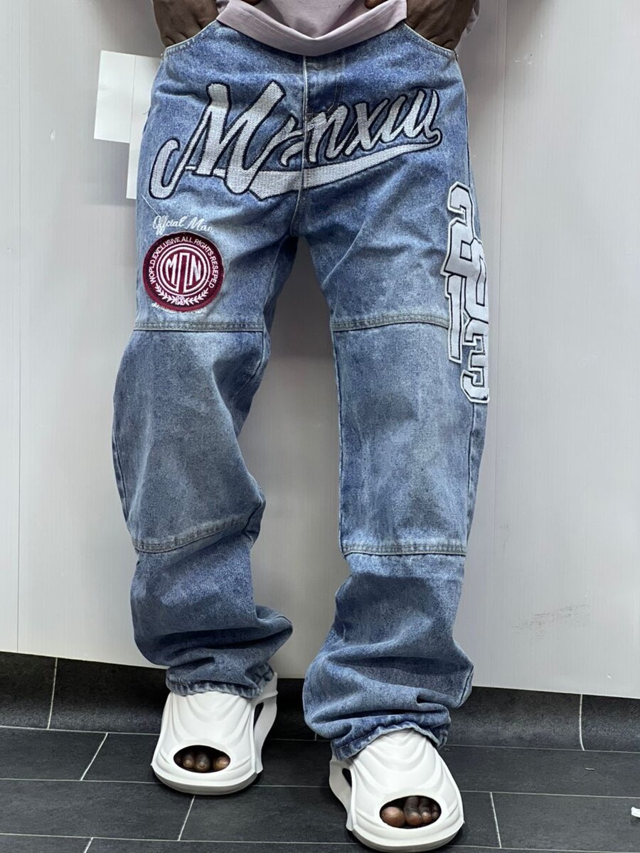 Ce jean décontracté affiche un design audacieux avec de grandes broderies logotypées. Fabriqué en denim de haute qualité, il garantit confort et style pour une allure urbaine tendance. Parfait pour un look quotidien décontracté.