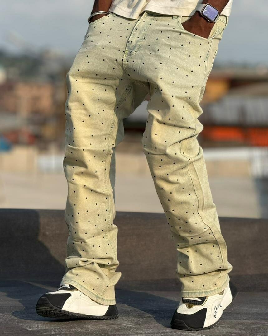 Optez pour ce jean droit à pois pour un style à la fois décontracté et tendance. Parfait pour les hommes à la recherche d'un look unique et confortable. Idéal pour diverses occasions urbaines ou décontractées.