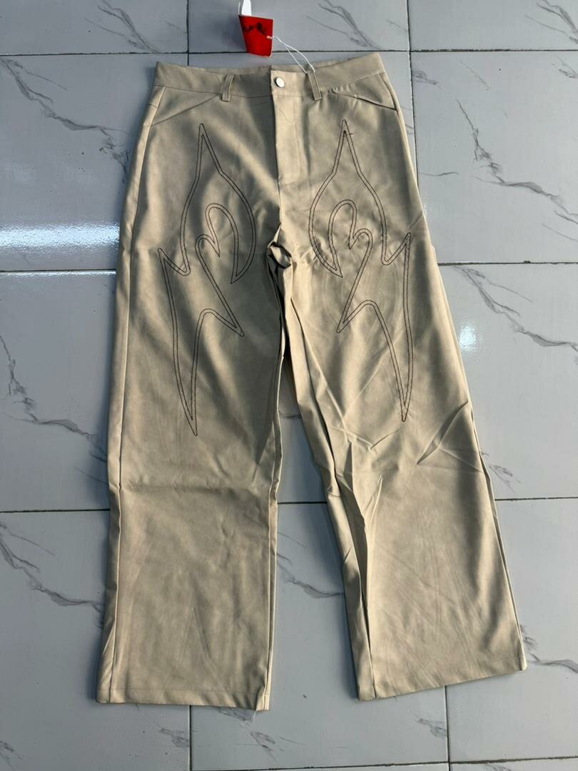 Découvrez ce pantalon droit ample, orné de motifs brodés, parfait pour un look urbain. Confortable et tendance, il est idéal pour un usage quotidien ou des occasions décontractées.