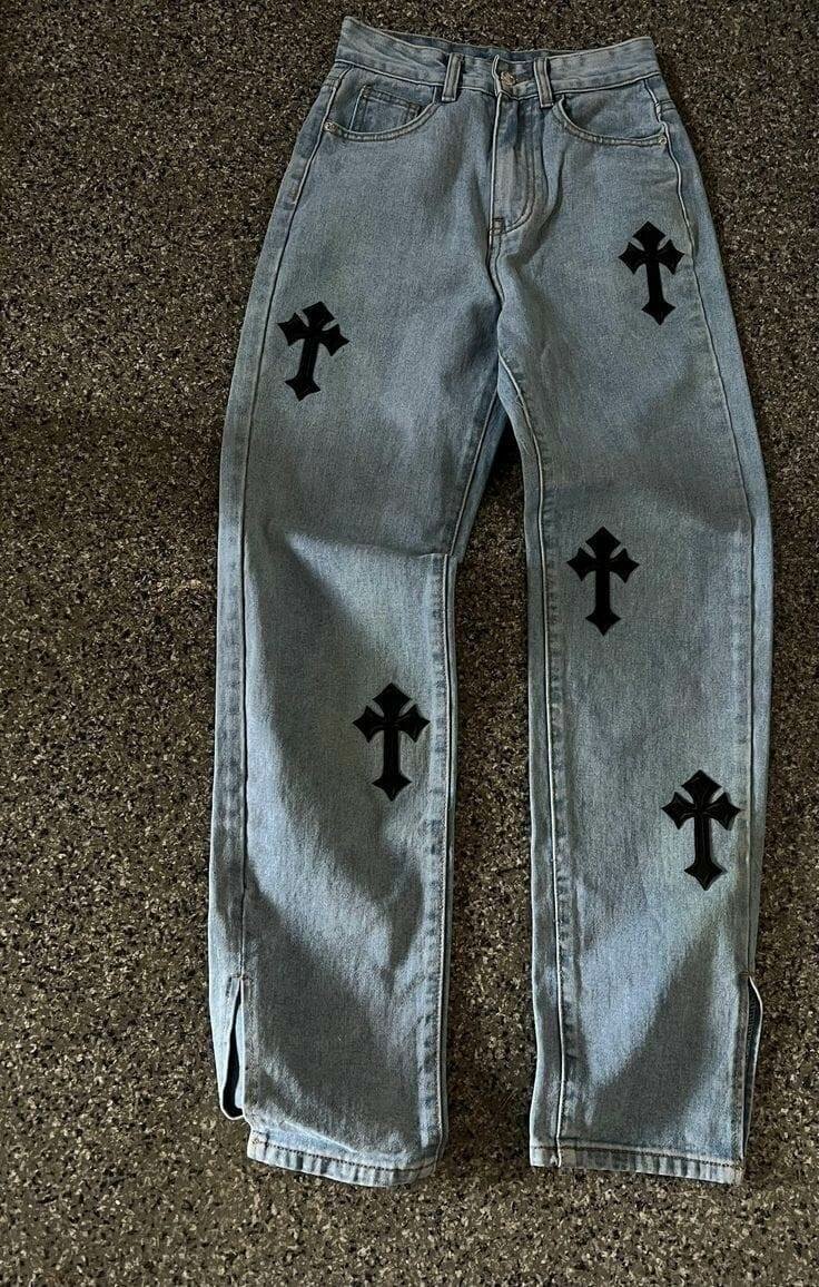 Découvrez notre jean droit avec un motif croix distinctif, parfait pour un style urbain et audacieux. Fabriqué en denim de haute qualité pour un confort optimal et une durabilité exceptionnelle. Idéal pour les tenues décontractées ou les sorties tendance. Ne manquez pas d'ajouter cette pièce unique à votre garde-robe!