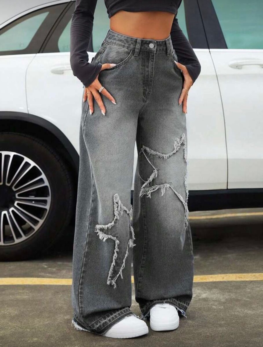 Découvrez notre jean évasé à motif étoiles brodées, alliant style rétro et confort moderne. Parfait pour un look décontracté, il s'accorde facilement avec vos tops préférés. Tissu résistant de haute qualité, idéal pour toutes occasions.