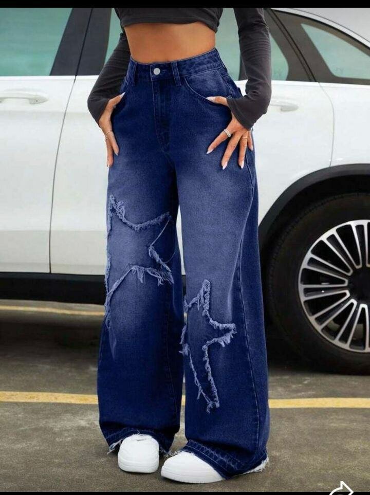 Ce jean évasé avec motif étoile est parfait pour un style moderne et audacieux. Fabriqué en denim de haute qualité, il offre non seulement confort mais aussi une touche unique à votre garde-robe. Idéal pour les sorties décontractées ou un look chic au quotidien.