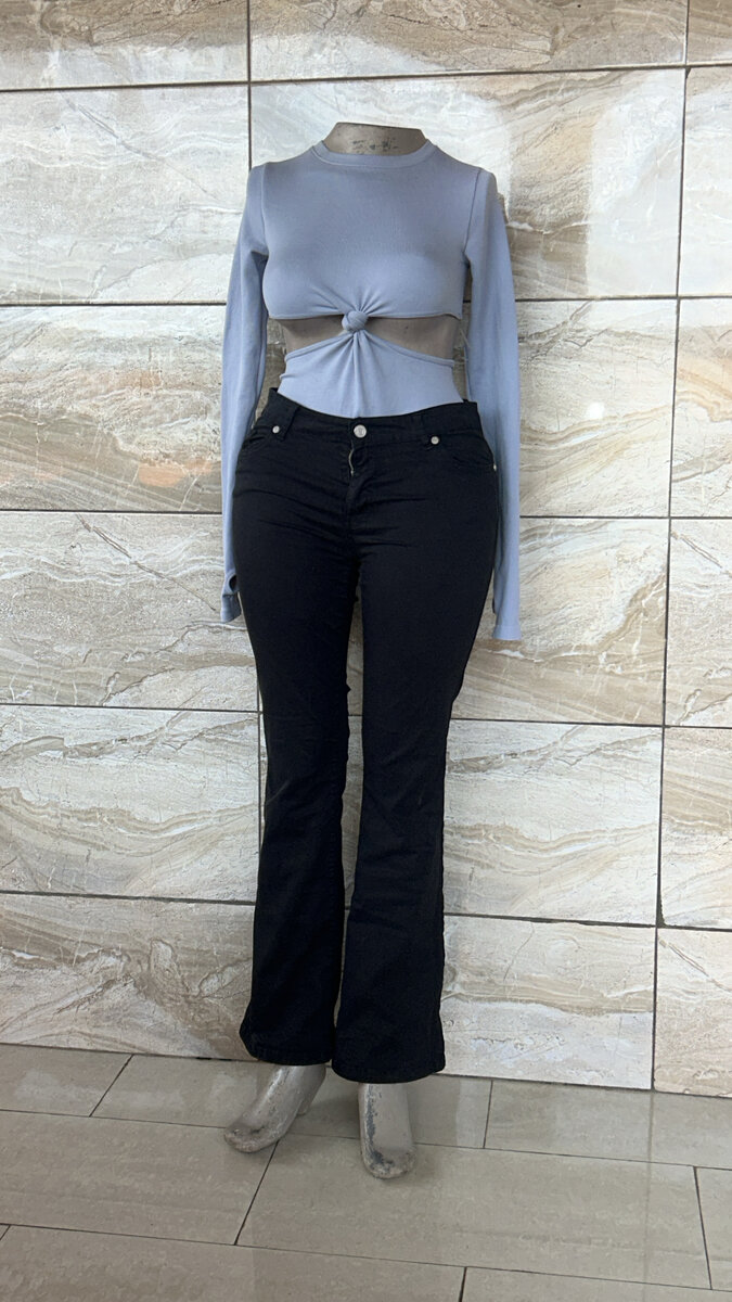 Découvrez notre jean évasé noir taille haute, idéal pour un look casual chic. Conçu avec une coupe flatteuse qui allonge la silhouette, il est parfait pour être porté avec un haut ajusté ou un blouson. Son tissu extensible assure un confort optimal et sa couleur noire s'adapte à toutes vos tenues. Adoptez ce classique indémodable pour toutes vos sorties.