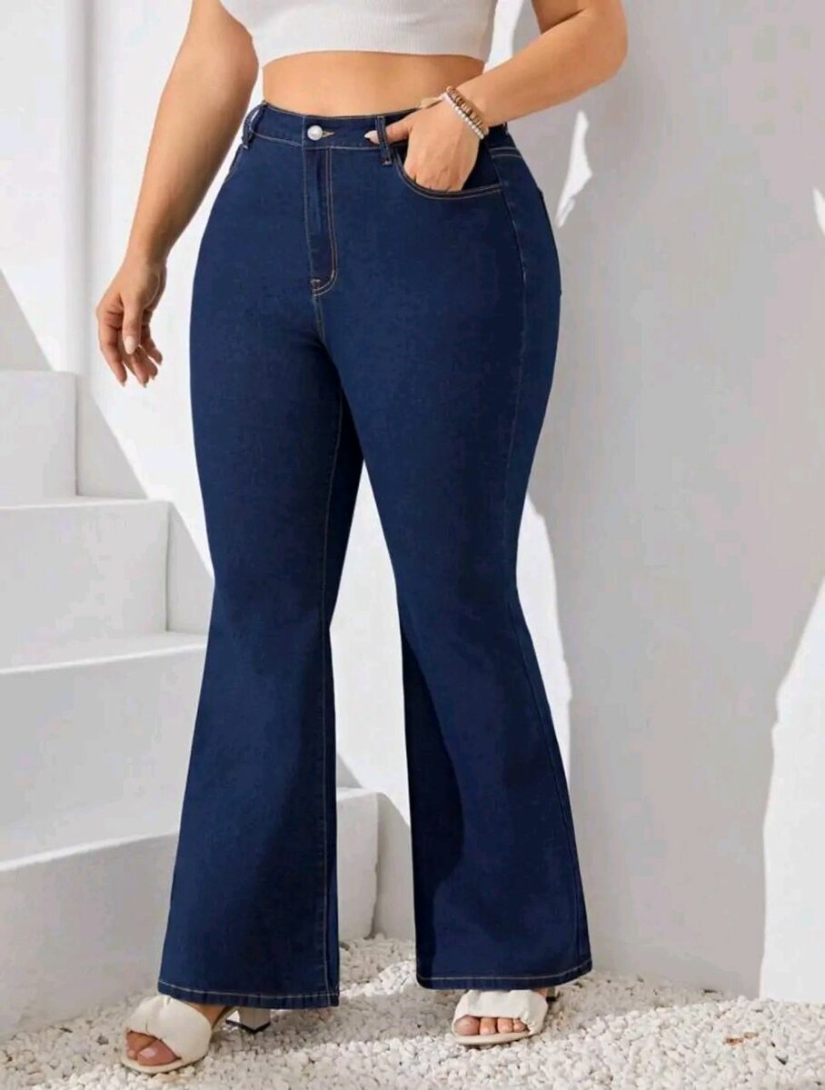 Découvrez ce jean évasé taille haute, parfait pour un style chic et décontracté. Fabriqué avec un denim stretch de qualité, il épouse vos courbes tout en offrant un confort optimal. Idéal pour toutes les occasions, il s'associe facilement avec vos hauts préférés. Un must-have pour votre garde-robe!