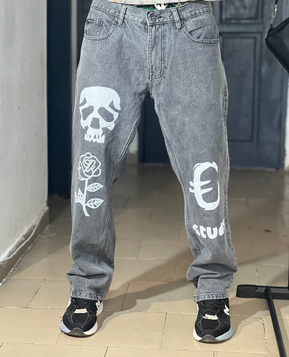 Adoptez un style audacieux avec ce jean gris orné d'impressions tendance. Parfait pour un look urbain et décontracté, ce pantalon se distingue par des motifs modernes et accrocheurs. Idéal pour les sorties en ville ou les occasions décontractées!