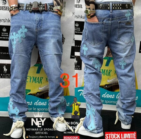 Ce jean décontracté pour homme, avec un imprimé unique, ajoute du style à votre garde-robe. Parfait pour un look quotidien tendance. Fabriqué en denim de haute qualité, il offre confort et durabilité. Idéal pour les sorties décontractées ou les événements stylés. Associez-le facilement avec vos hauts préférés pour un style sans effort.