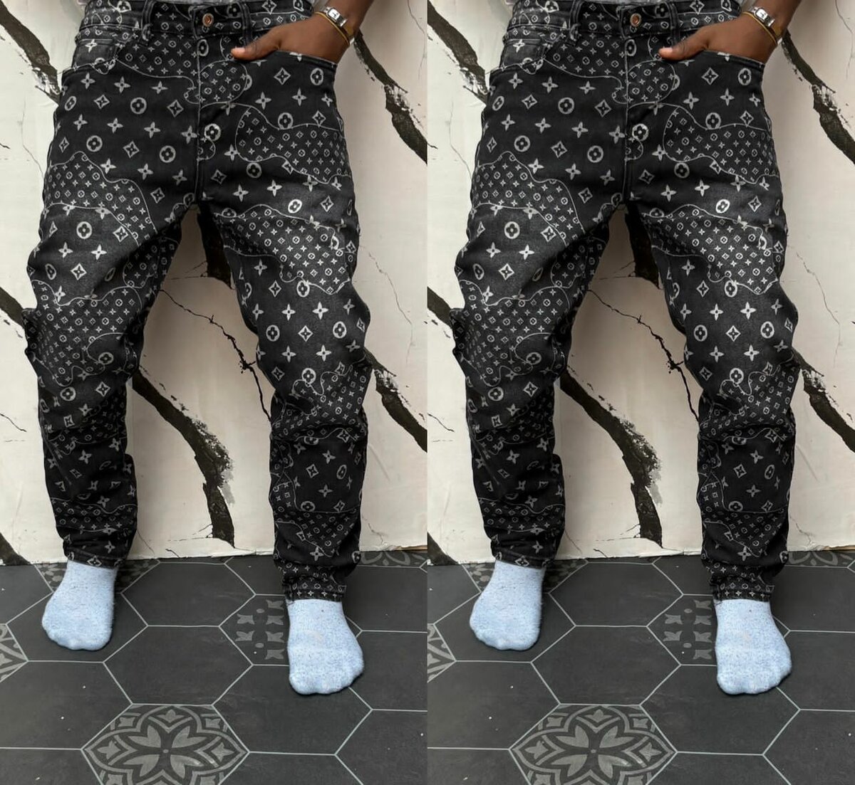 Optez pour le confort avec ce jean jogger imprimé moderne. Parfait pour un look décontracté et stylé. Confectionné avec des matériaux de haute qualité, il se distingue par son confort incroyable et son design unique. Idéal pour une journée en ville ou une sortie entre amis. Adoptez-le pour une touche d'élégance urbaine.
