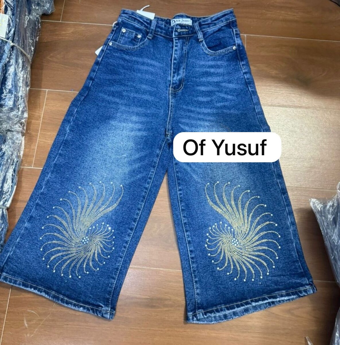 Découvrez notre pantalon large en jean Of Yusuf, élégamment brodé de strass. Idéal pour une tenue décontractée et raffinée. Conçu pour un confort optimal.