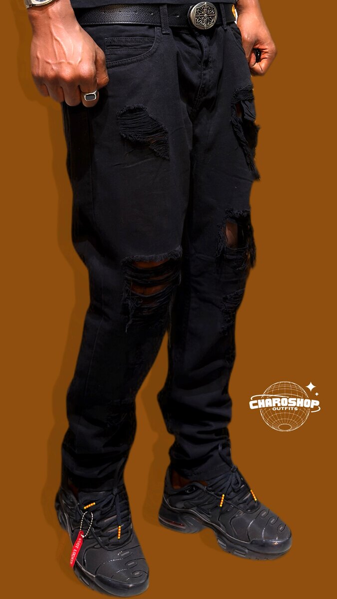 Optez pour le style audacieux avec ce jean noir déchiré pour homme. Confortable et tendance, il est parfait pour une tenue décontractée ou urbaine.