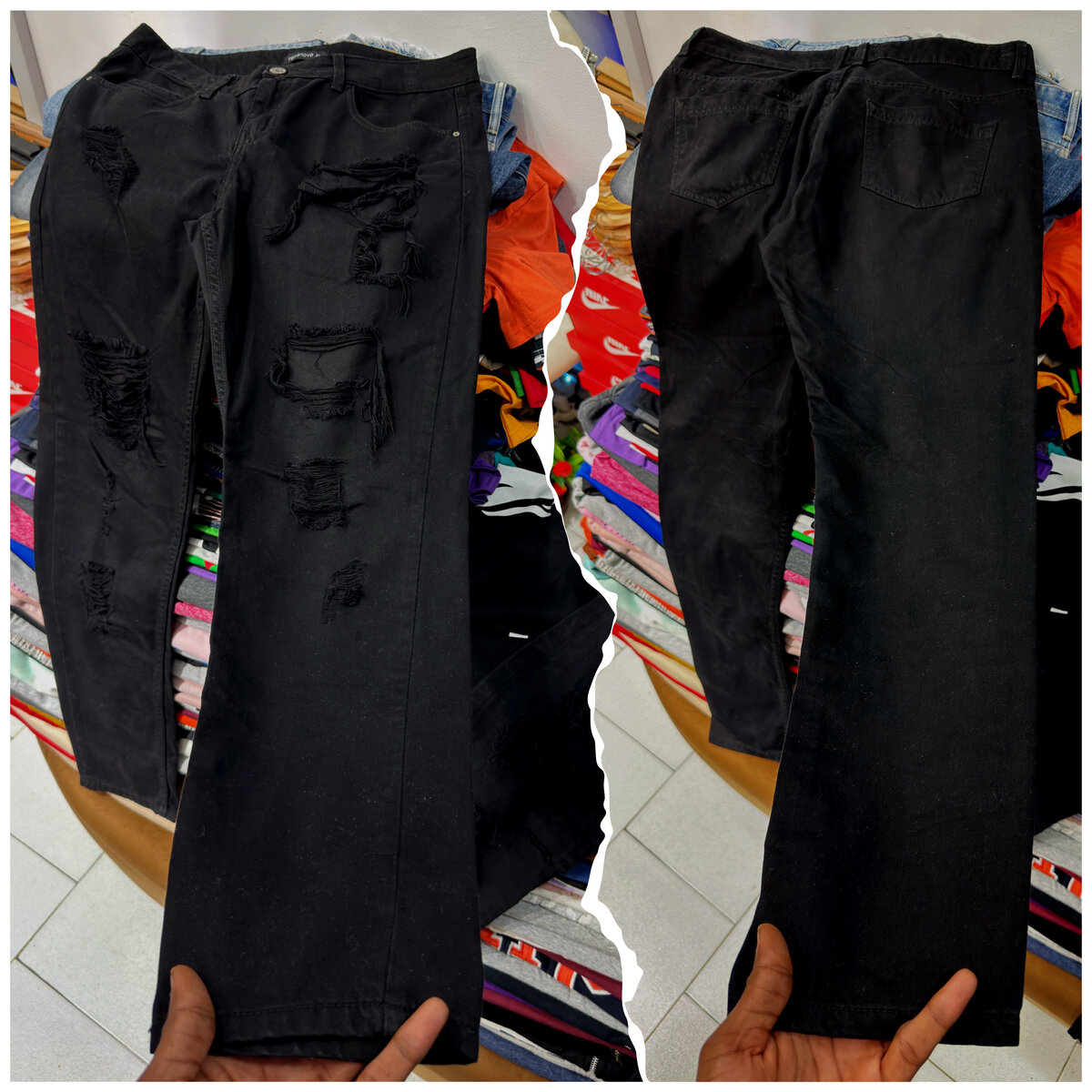 Optez pour ce jean noir déchiré pour un look audacieux et moderne. Fabriqué avec un tissu durable et confortable, c'est le choix idéal pour une tenue décontractée. Parfait pour les sorties en ville ou les soirées entre amis.