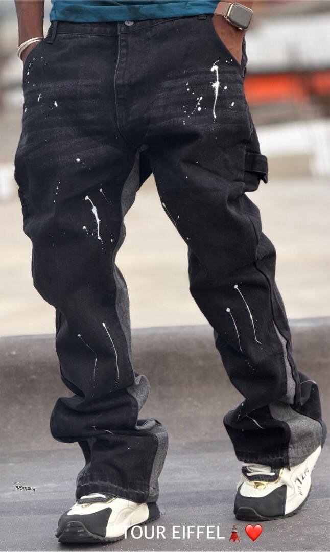 Découvrez ce jean noir pour homme avec un design décontracté et moderne. Idéal pour un look urbain, il se distingue par ses éclaboussures de peinture blanches qui ajoutent une touche artistique. Facile à assortir avec vos tenues préférées, il devient un indispensable de votre garde-robe. Parfait pour une sortie entre amis ou une journée décontractée en ville.