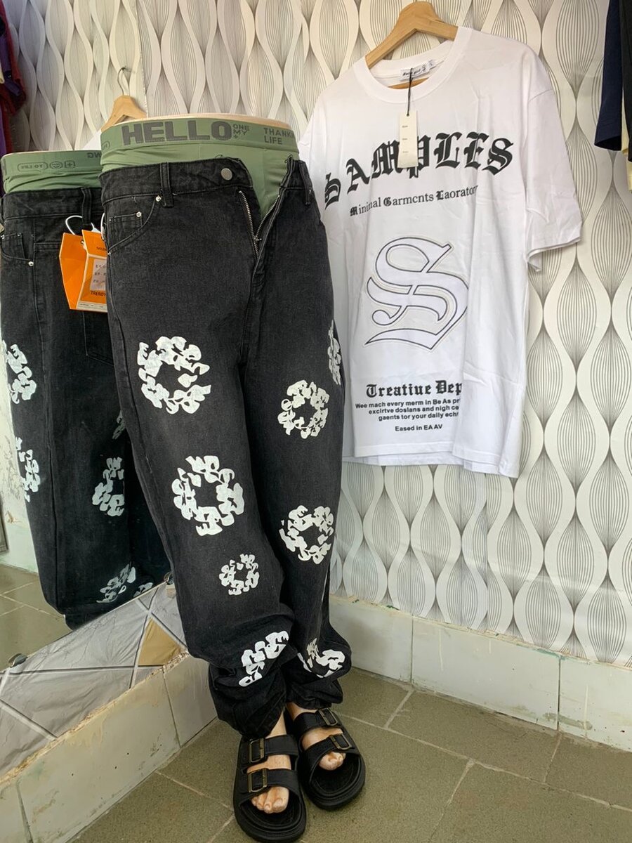 Découvrez ce jean noir avec imprimés graphiques, parfait pour un look urbain et tendance. Fabriqué en denim de qualité, il est confortable et durable. Idéal pour les sorties quotidiennes ou les soirées décontractées. Associez-le à un t-shirt ou une chemise pour un style unique.