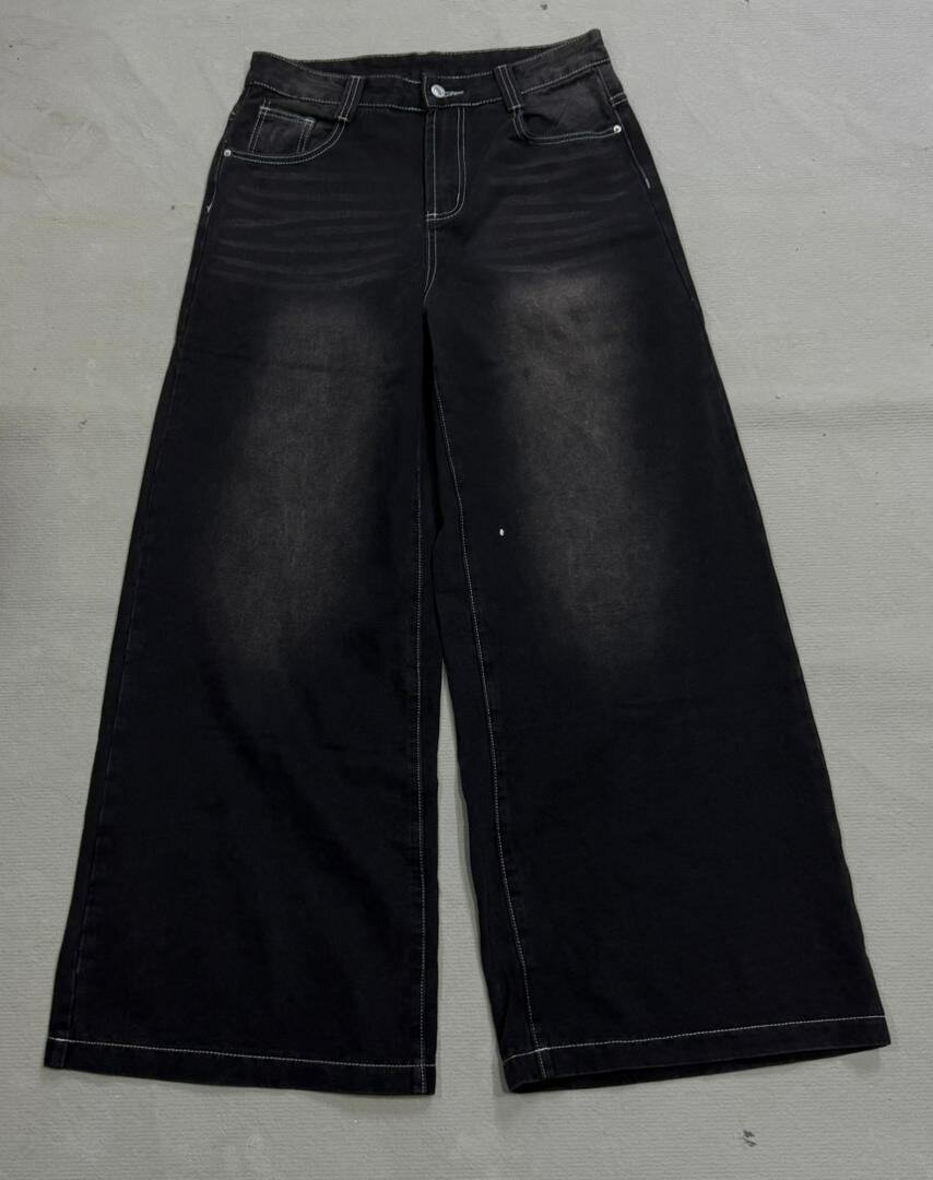 Jean noir large délavé avec lettrage