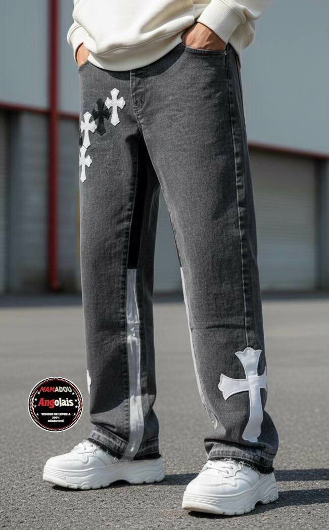 Découvrez ce jean noir au design urbain unique, parfait pour un look décontracté. Avec des motifs audacieux et une coupe confortable, il devient l'élément essentiel de votre garde-robe casual. Idéal pour les sorties en ville, ce pantalon vous offre style et confort tout au long de la journée.