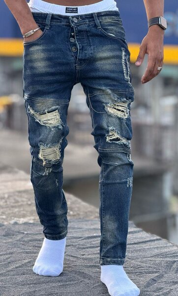 Adoptez un style urbain avec ce jean slim déchiré. Parfait pour un look casual et moderne, il s'accorde facilement avec vos tenues préférées. Confortable et à la mode, idéal pour une sortie entre amis ou une journée en ville.